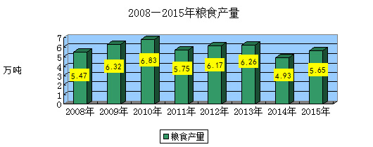 粮油产量平稳增长。全年粮食产量56538吨,比上年增长14.6%。其中夏粮产量28438吨,增长2.28%,秋粮产量28100吨,增长30.53%。油料产量12324吨,增长15.8%,夏季油料(油菜籽)产量2173吨,增长28.05%,秋季油料产量10151吨,增长13.48%。
