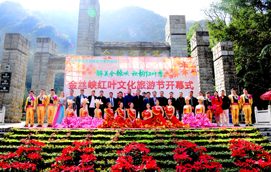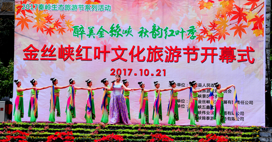 10月21日,2017年秦岭生态旅游节系列活动——金丝峡红叶文化旅游节在5A景区金丝峡隆重开幕。开幕式由金丝峡景区管委会书记张仲才主持,商洛市旅游发展委员会副主任胡金鑫宣布“金丝峡红叶文化旅游节”开幕,bt365娱乐官网副县长徐贤斌致辞,商南县旅游发展委员会主任朱峰宣布了活动期间优惠政策,金丝峡景区高级导游应亚楠对本次红叶节做了精彩推介。开幕式结束后,受邀嘉宾及游客共同观看了文艺表演,民俗、歌舞节目精彩纷呈,赢得了观众阵阵喝彩和掌声。