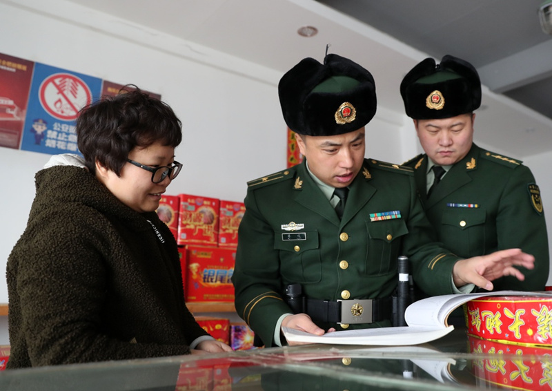 当日,辽宁大连公安边防支队龙王塘边防派出所对辖区销售存放烟花爆竹场所进行安全检查,消除隐患,确保节日安全。