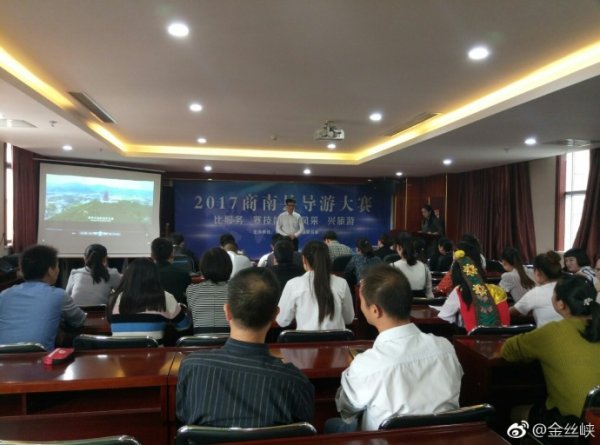 9月18日,由商南县旅游发展委员会主办的2017年最美导游大赛在鹿城商务酒店举行,活动旨在进一步提升导游和讲解员的服务水平、交流导游工作经验,展示商南旅游形象。全县A级景区(点)、旅行社的全体导游员和讲解员参加了大赛。
