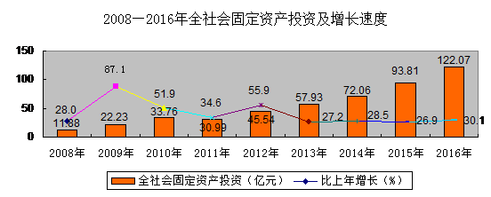 2016年,完成全社会固定资产投资122.07亿元,比上年增长30.1%;其中城镇固定资产投资120.20亿元,增长30.7%。按构成分:建筑工程87.74亿元,增长14.5%;安装工程8.69亿元,增长290.1%;设备工器具购置11.48亿元,增长45.3%;其他费用12.29亿元,增长121.1%。重大项目进展加快。全年,计划总投资在50000万元以上新开工项目78个,占总项目个数的46.71%,完成投资105.7亿元,占固定资产投资完成总额的87.94%。基础设施投资加大。农村公路桥涵配套工程、丹江干流防洪工程、矿山地质环境恢复治理、西街道路扩建、棚户区改造及配套基础设施、公共停车场建设、金丝峡景区水毁重建、农村道路养护等项目均按进度完成。其中:金丝峡景区旅游基础设施建设完成投资1.94亿元、金丝峡景区水毁重建完成投资0.82亿元、矿山地质恢复治理完成投资0.44亿元、公共停车场建设完成投资2.73亿元、棚户区改造完成投资18.46亿元、绿化造林完成投资1.47亿元、道路建设及养护完成投资2.91亿元。民生投资增加。丹江防洪治理完成投资1.28亿元、易地移民搬迁完成投资7.68亿元、天鹿生态养老产业完成投资1.94亿元。本年施工项目167个,投产项目105个。