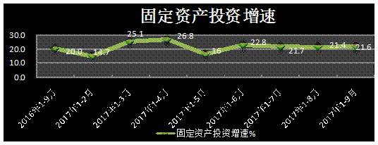 (四)固定资产投资较快增长。1—9月,全县完成城镇固定资产投资102.72亿元,增长21.6%,比同期回升1.6个百分点、比上半年回落1.2个百分点。按城镇固定资产投资构成分:建筑工程71.01亿元,增长15.0%;安装工程13.76亿元,增长1.38倍;设备工器具购置5.92亿元,下降13.9%;其他费用12.04亿元,增长20.6%。