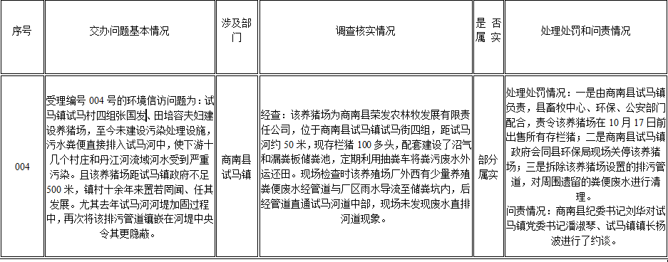 省委环境保护督察组交办涉及商南县环境信访案件第一批交办问题办理结果通报如下: